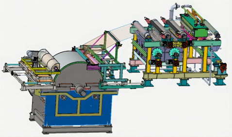 電解銅箔一體機設(shè)備主要由全鈦一體式陽極槽、進(jìn)液流量分配裝置、陰極輥驅(qū)動裝置、陰極輥導(dǎo)電裝置、陰極輥、“O”型圈循環(huán)裝置、邊部密封裝置、擠液和清洗裝置、防氧化(鈍化)處理裝置、烘干裝置、切邊裝置、槽體支架、收卷裝置、電氣設(shè)備和控制系統(tǒng)等組成。